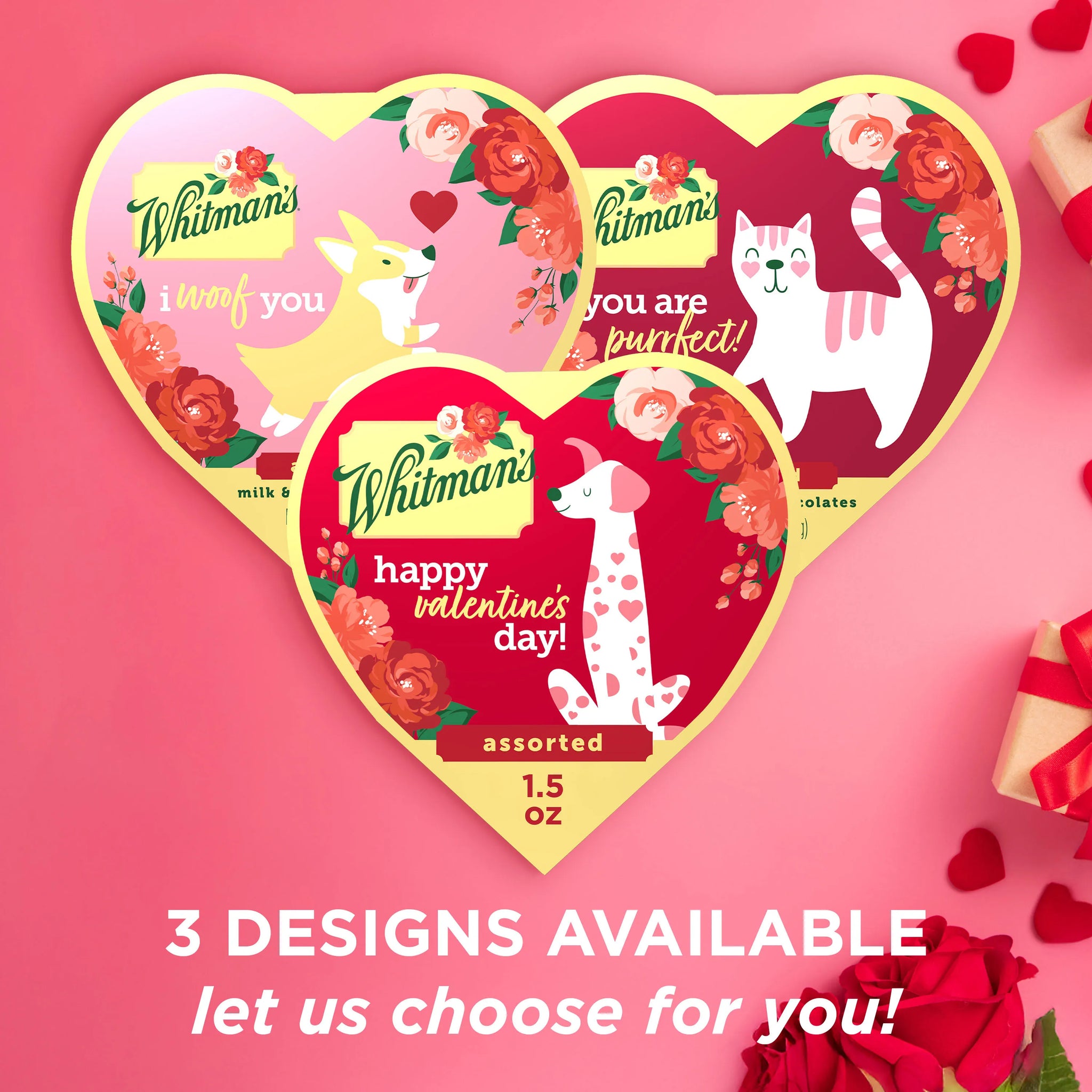 1.5 oz Whiteman's Sampler Assorted Chocolates Animal Friends Heart Boxes, 3 designs, (3pcs)